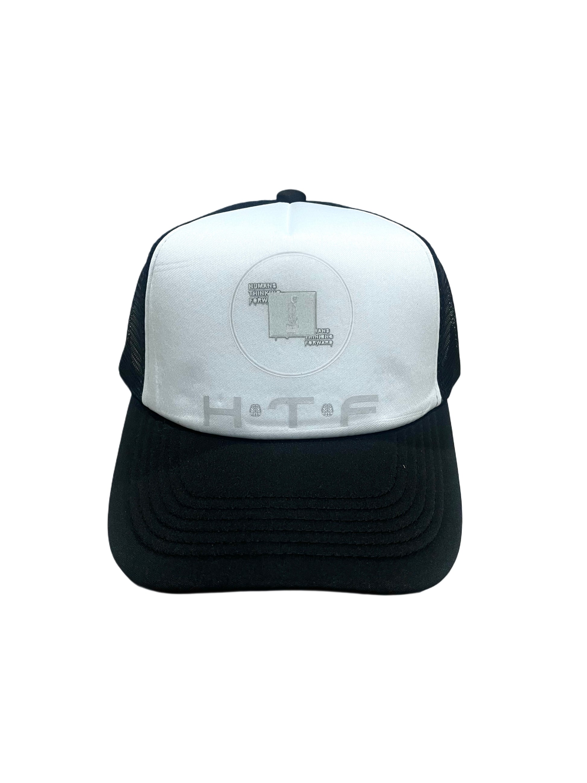 In the midst of the ZOMBU$INESS happening across the world, H/T/F's Trucker Hat symbolizes resilience and determination in the urban landscape and beyond the industry of creativity, as we embrace both our humanity and our survival instincts. This hat pays homage to N.E.R.D trucker hats of 2008, while presenting a clever twist on the relationship between humans and zombies in a visual narrative. Join us as we think forward in order to survive the world ahead of us.
